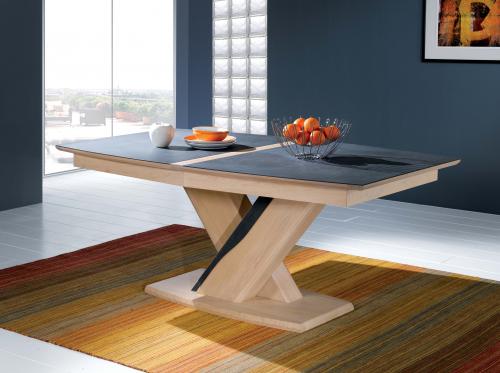 Table repas ABSOLU – Chêne massif & céramique – 1 allonge portefeuille de 90 cm
