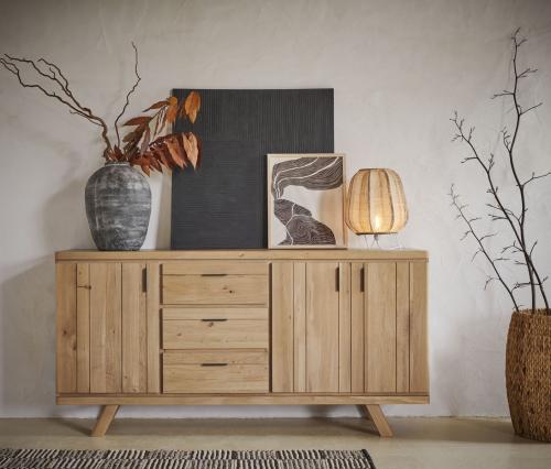 Bahut THALÈS 3 portes moyen modèle en chêne massif et céramique avec tiroir