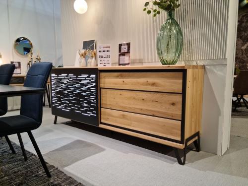 Bahut THALÈS 3 portes en chêne massif et céramique avec éclairage LED