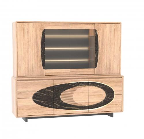 Vitrine THALÈS 2 portes en chêne massif et céramique avec éclairage LED
