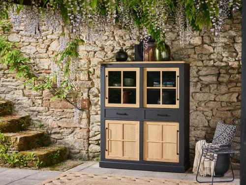 Bahut haut THALÈS 3 portes avec niche en chêne massif et céramique