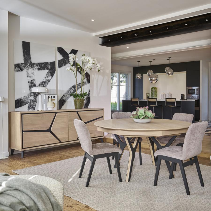Le bahut 2 portes coplanaires de la collection NÉO est un meuble élégant et moderne qui ajoutera une touche de sophistication à votre intérieur. Il est fabriqué en bois massif avec une finition laquée et présente un design simple et épuré. Ce bahut vous offre un espace de rangement généreux pour ranger votre vaisselle, vos livres, vos jeux de société ou tout autre objet que vous souhaitez dissimuler.