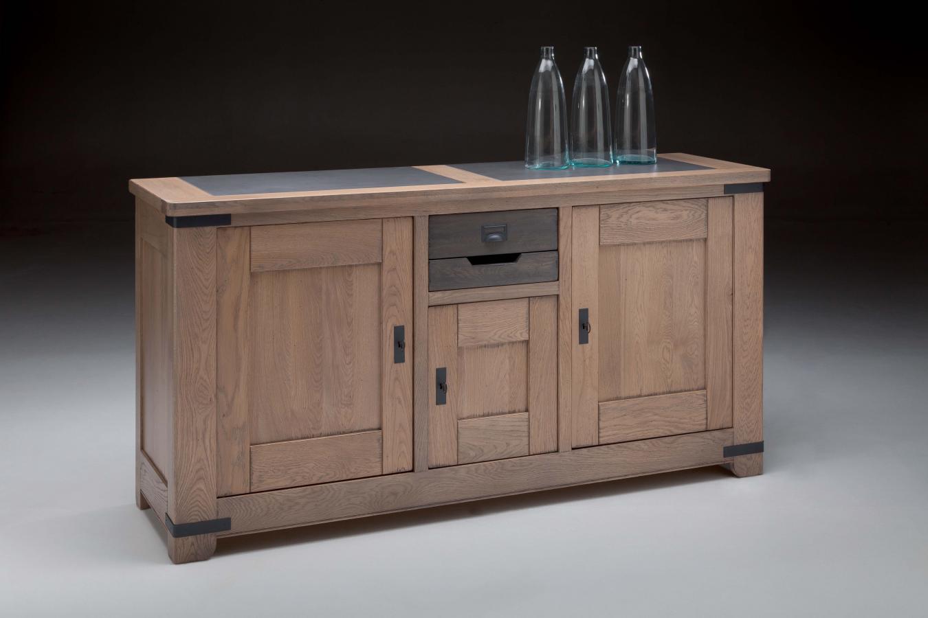 Le bahut bas 3 portes de la collection TALOS s'insérera parfaitement dans votre séjour et vous offrira du rangement grâce à ses 2 tablettes derrière chaque porte latérale, sa tablette derrière la porte centrale et ses 2 tiroirs.