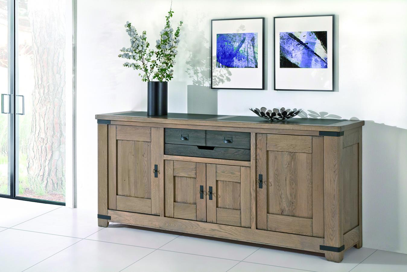 Le grand bahut de la collection TALOS s'insérera parfaitement dans votre séjour et vous offrira beaucoup de rangement grâce à ses 2 tablettes derrière chaque porte latérale, sa tablette derrière chaque porte centrale et ses 2 tiroirs.