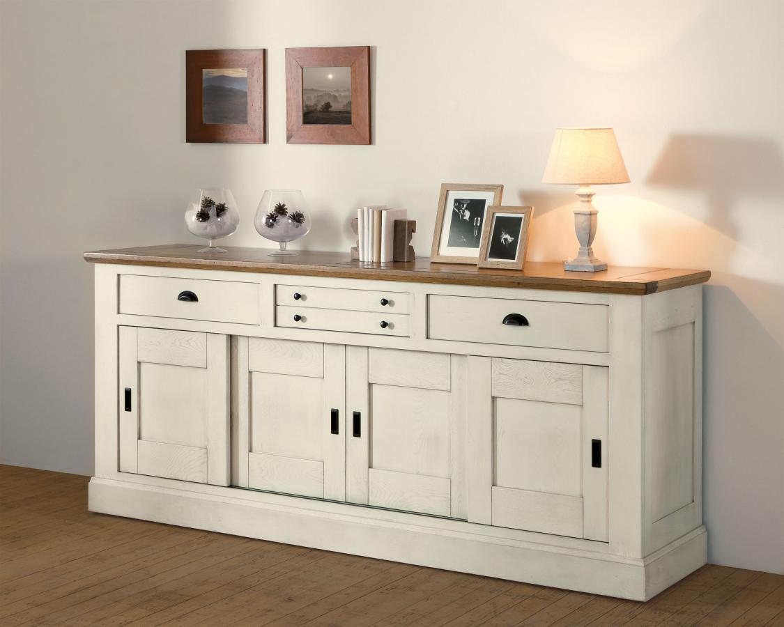 Le grand bahut ROMANCE meublera votre séjour et vous apportera du rangement grâce à ses 3 grandes tablettes et ses 3 tiroirs.