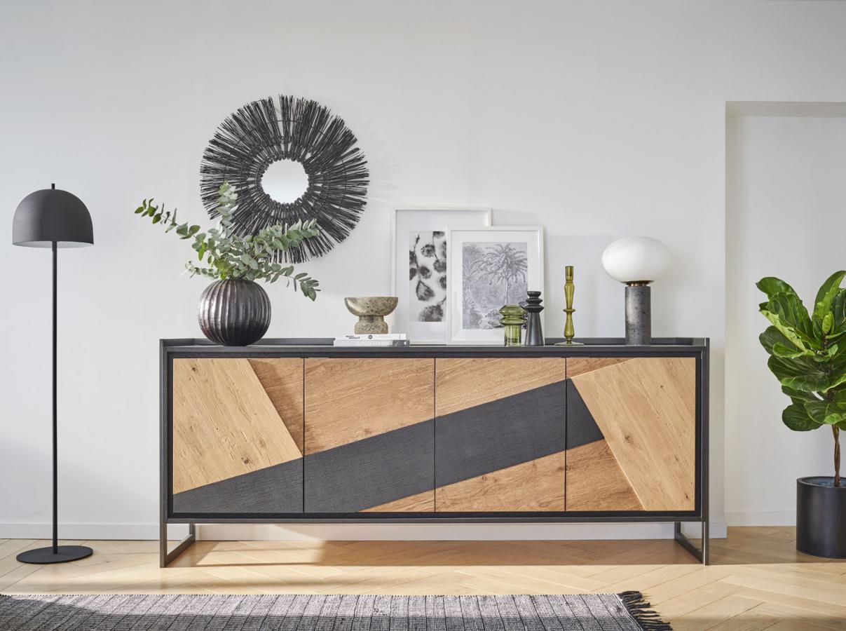 L'enfilade de la collection GRAFFIK est un meuble contemporain qui ne manquera pas d'attirer l'attention dans votre salle à manger ou votre salon. Son design unique combine des éléments en bois agencés de manière ingénieuse et des contrastes de teintes pour créer un effet graphique saisissant.