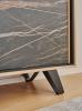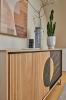 Élément central de la collection Sphère, cette enfilade 2 portes coulissantes conjugue raffinement et fonctionnalité. Le mariage subtil du bois naturel rainuré et du noir marbré confère au meuble un caractère unique, à la fois chaleureux et moderne.