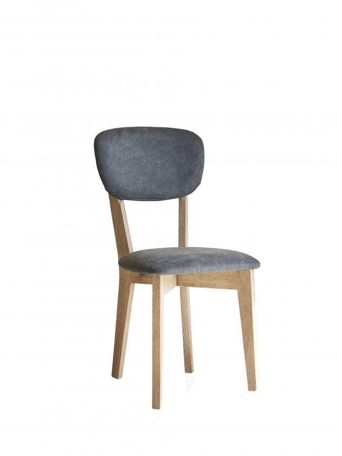 La chaise INDUS est entièrement recouverte de tissu gris foncé et comporte un dossier légèrement arrondi pour un confort optimal.