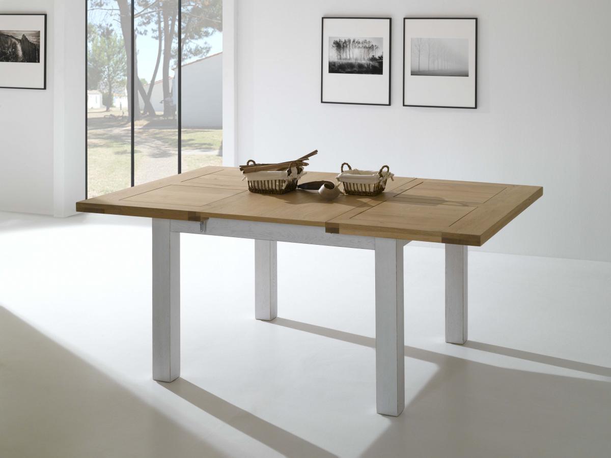 La table carrée de la collection WHITNEY, fabriquée en France, s'insérera parfaitement dans votre séjour et vous offrira une capacité jusqu'à 8 couverts grâce à son allonge portefeuille.