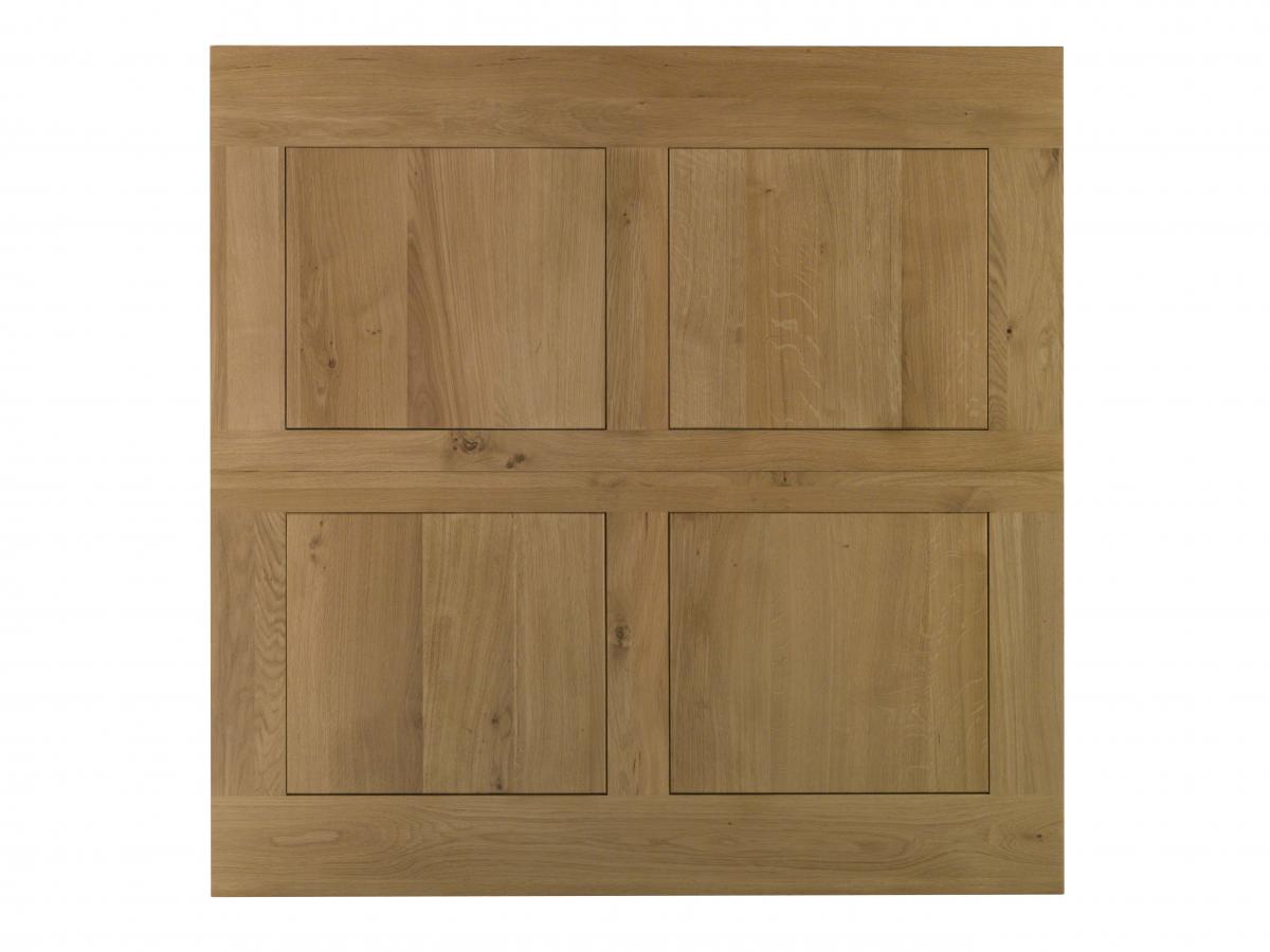 - Chêne massif, qualité très rustique à nœuds, gerces, fentes et traces d'aubier