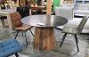 Table ronde design moderne 120 cm – Frêne laqué noir & pin massif recyclé