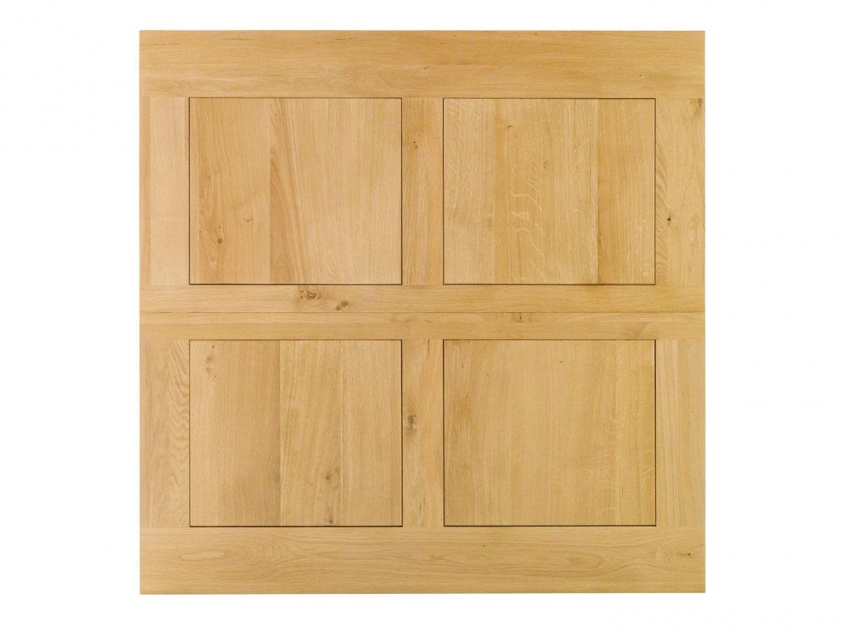 - Chêne massif, qualité très rustique à nœuds, gerces, fentes et traces d'aubier
