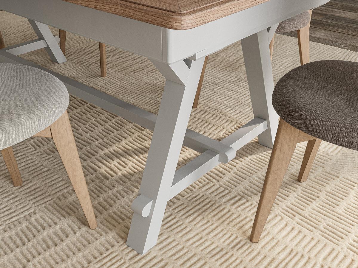 La table rectangulaire COSY est fabriquée en chêne massif certifié Origine France Garantie, garantissant solidité et longévité. Le plateau, épais de 27 mm, est composé de panneaux centraux en médium plaqué chêne avec rives en chêne massif, pour une finition raffinée et durable. Les coulisses métalliques synchronisées assurent un déploiement facile et sécurisé des allonges portefeuille. Les pieds et ceintures en chêne massif renforcent la stabilité et l’esthétique de cette table élégante.