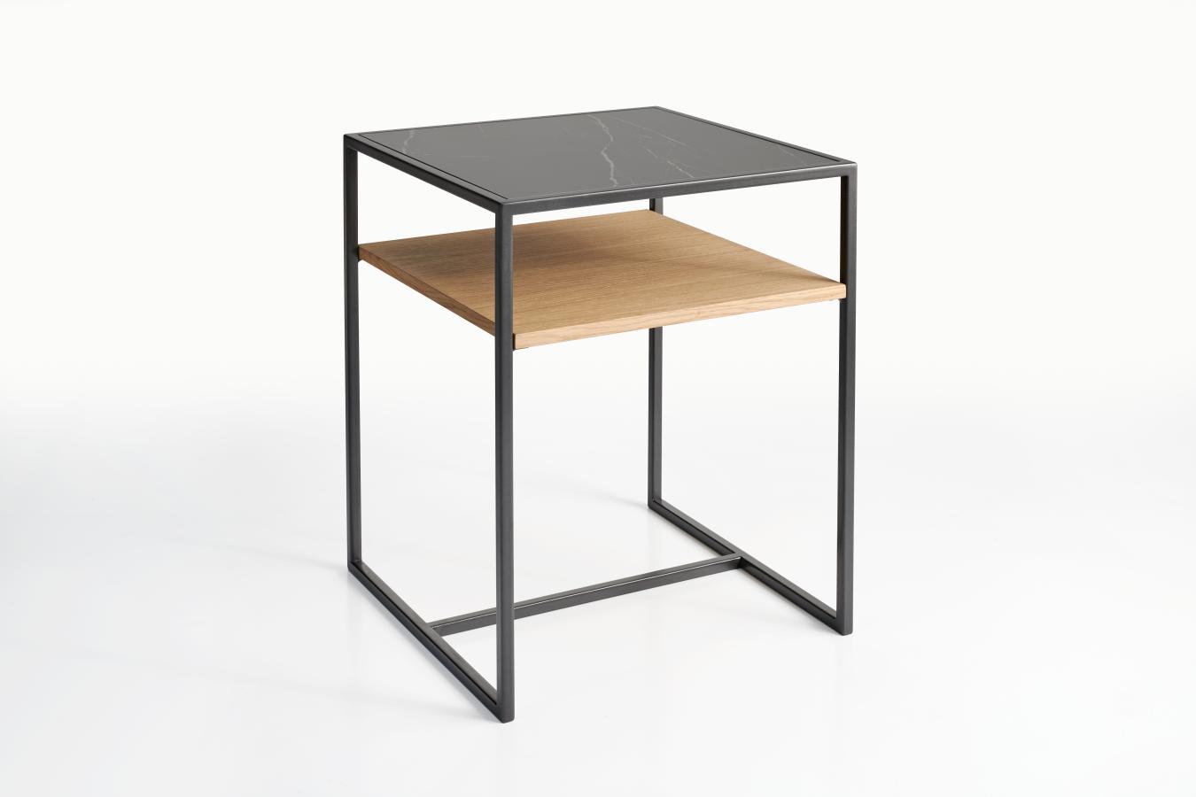Le bout de canapé DANUBE en céramique effet marbre noir et en bois est parfait pour les intérieurs ayant besoin d'une touche chaleureuse.