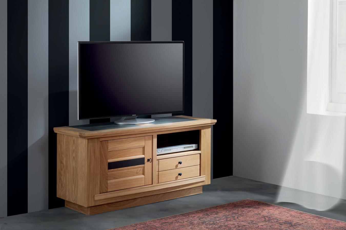 Le meuble TV de la collection BELEM, fabriqué en France, s'insérera parfaitement dans votre salon et vous offrira un grand espace de rangement grâce à sa tablete(derrière la porte), à son tiroir et à sa niche centrale.