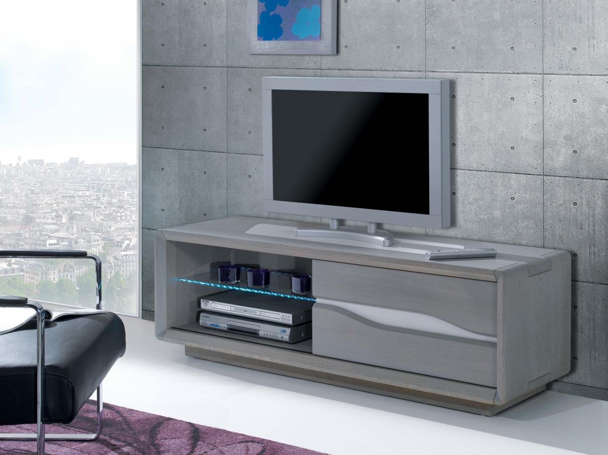 Le meuble TV de la collection CERAM, fabriqué en France, s'insérera parfaitement dans votre salon et vous offrira beaucoup de rangement grâce à ses trois niches.