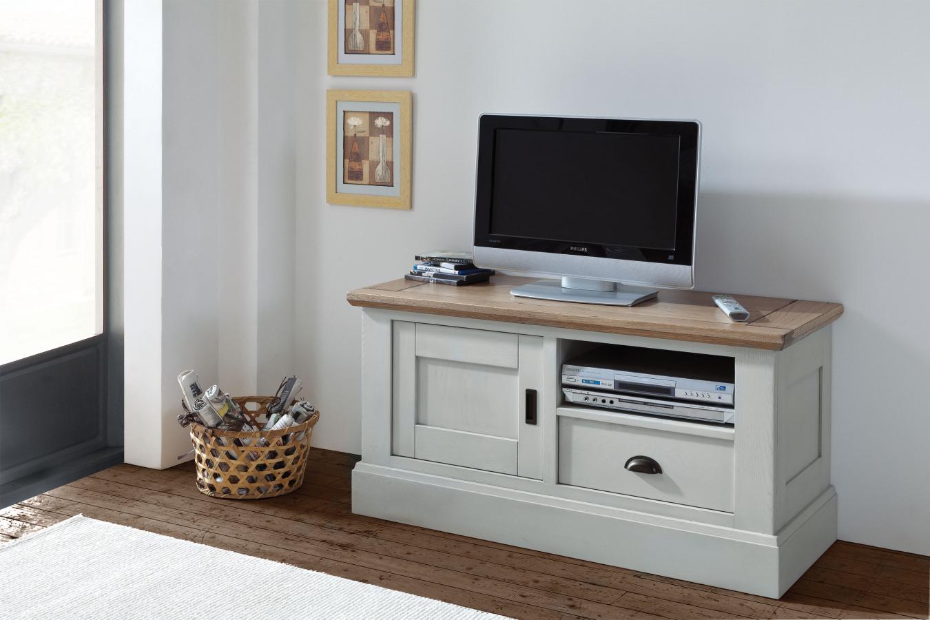 Le meuble TV ROMANCE meublera votre salon et vous apportera du rangement grâce à 1 tablette dans un compartiment fermé, 1 niche et 1 tiroir.