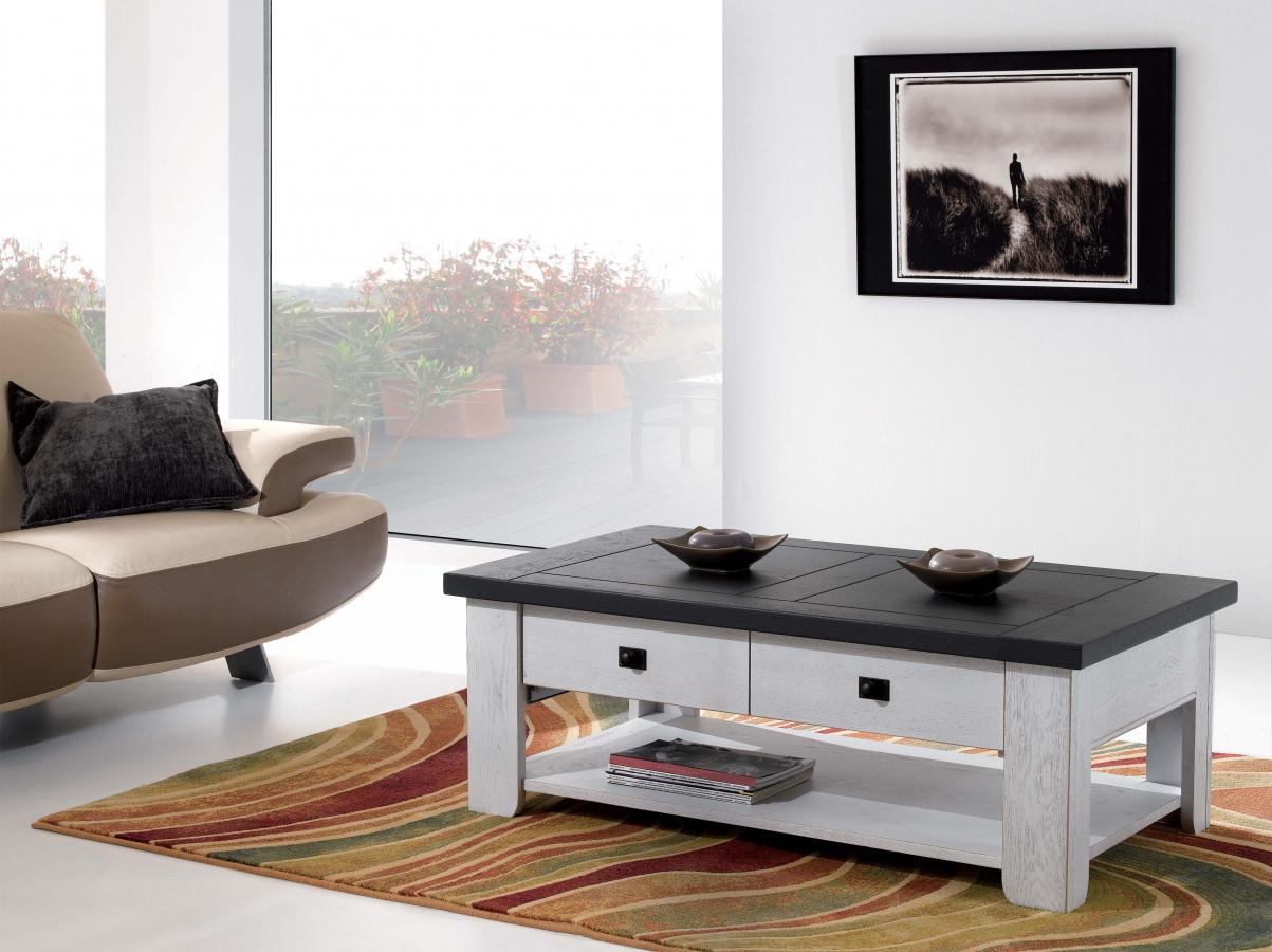 La table basse de la collection WHITNEY, fabriquée en France, s'insérera parfaitement dans votre salon et vous offrira du rangement grâce à son grand tiroir.