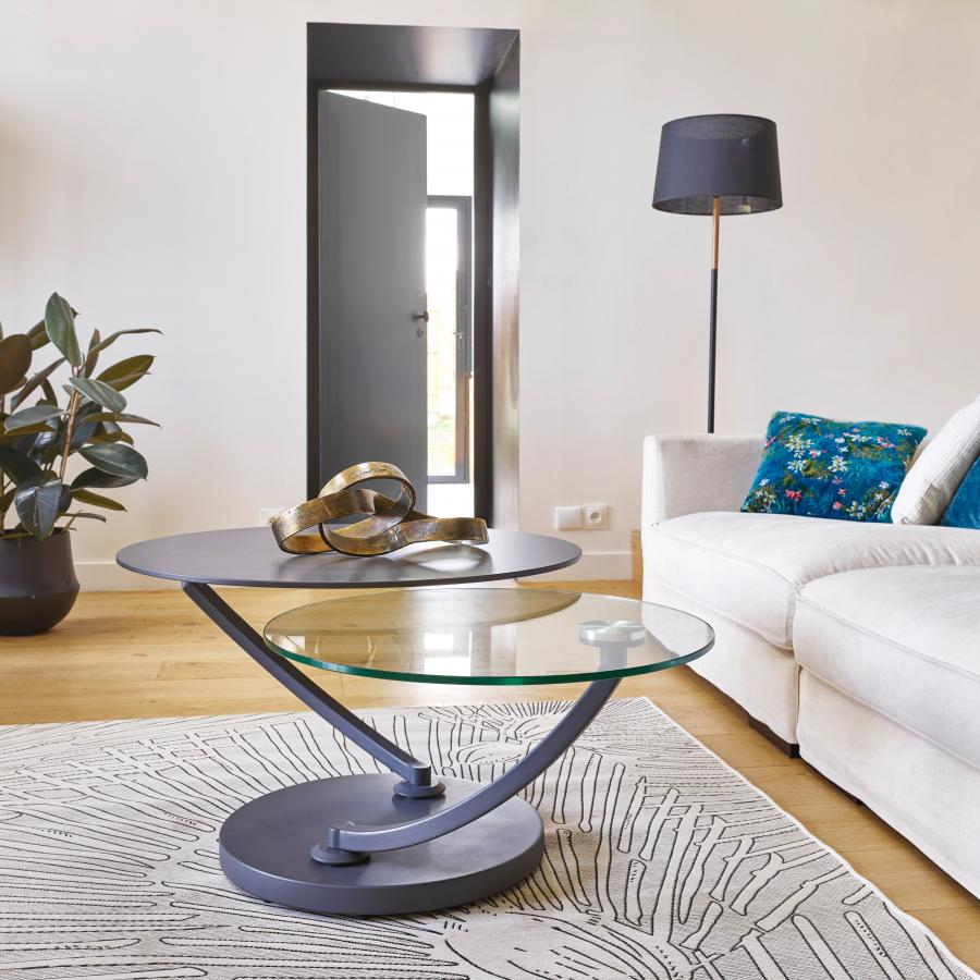 La table basse ronde 2 niveaux MAGMA en verre trempé est parfaite pour apporter une touche d'originalité dans votre intérieur.