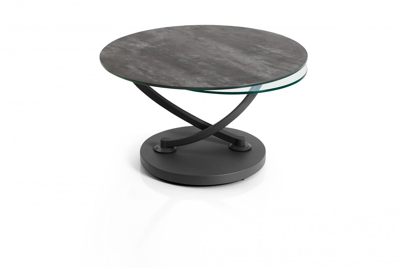 La table basse ronde MAGMA en céramique pivotant et en verre est parfaite pour apporter une touche d'originalité dans votre intérieur.