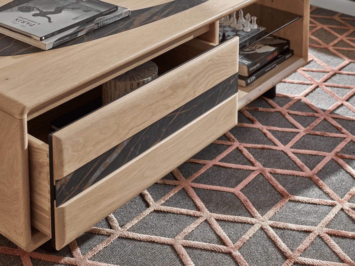 Table basse THALÈS 1 tiroir en chêne massif et céramique