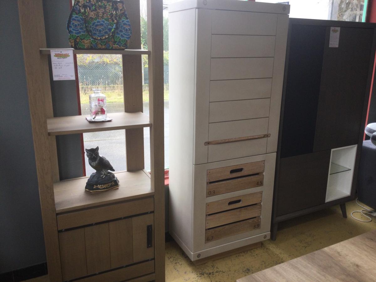 Colonne 2 portes, la porte du bas à une façade ressemblant à des tiroirs casiers.