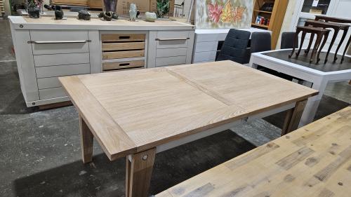 fibres de moyenne densité laqué Dune, chêne massif teinte muscat.