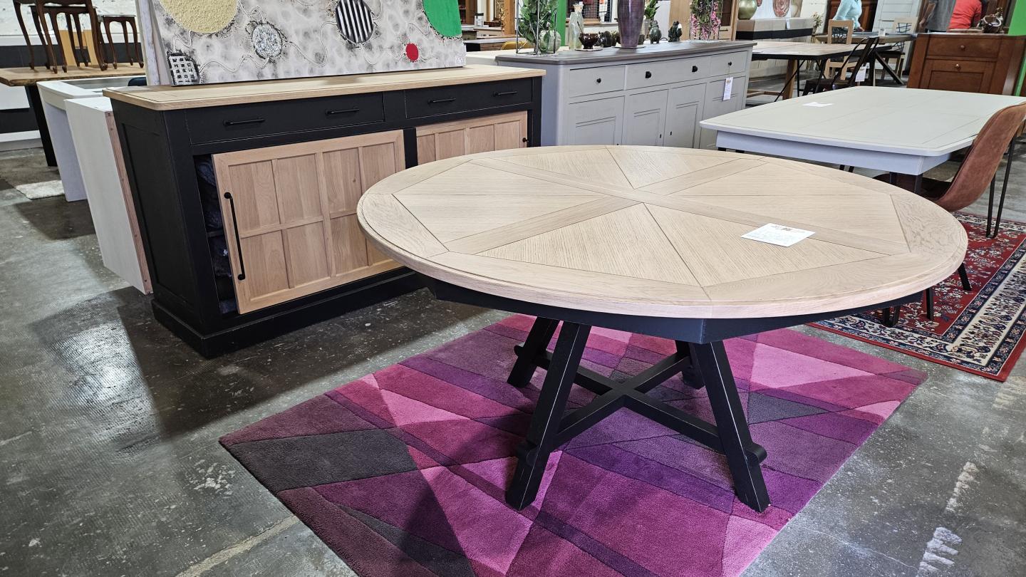 - Table ronde Ø150 cm avec allonge centrale de 100 cm