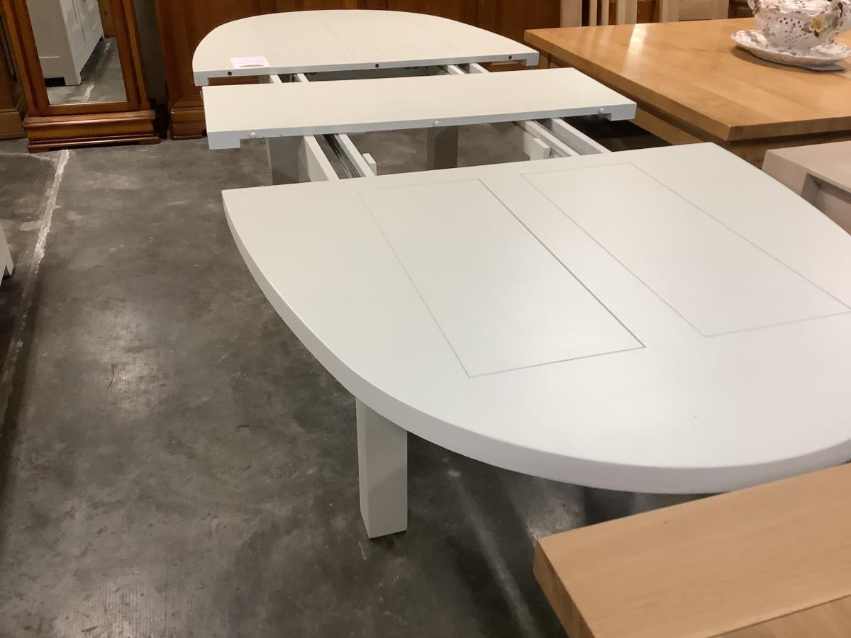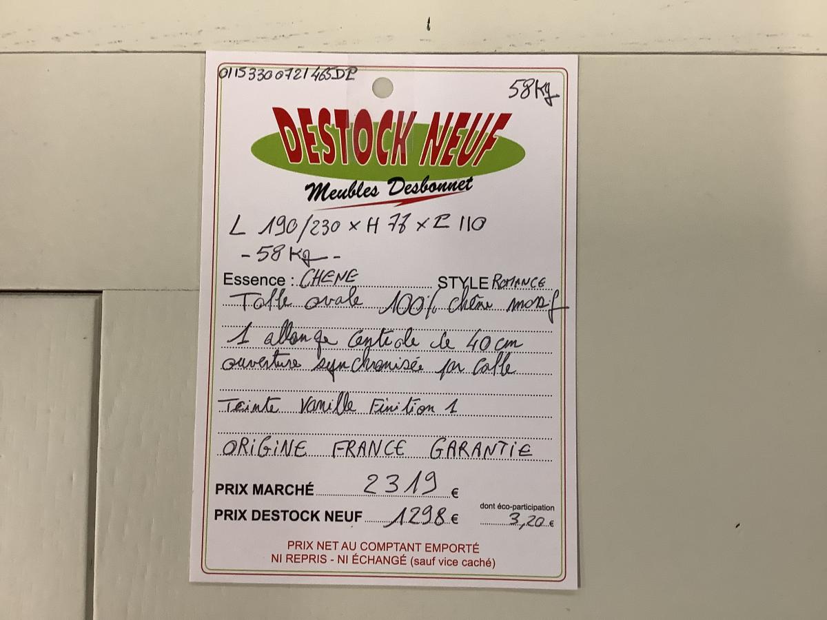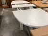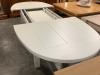 Table de salle à manger ovale avec 1 allonge centrale stockée sous le plateau.