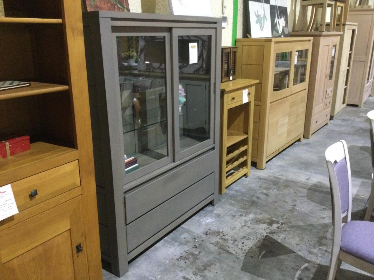 Cette Vitrine 2 portes coulissantes 2 tiroirs 100% chêne massif