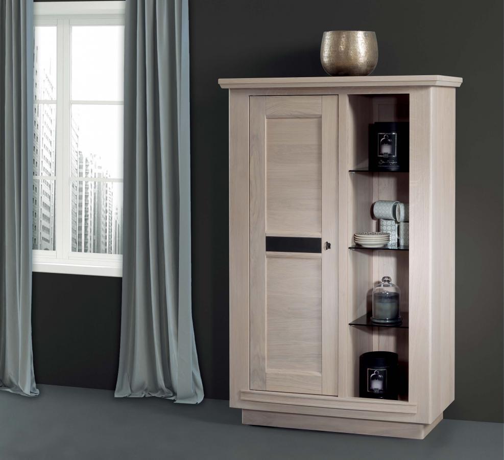 | Étagères | Épaisseur 20mm chêne massif abouté ou non. Les tablettes sont toujours laquées en gris anthracite (proche n° 22), quelle que soit la teinte du meuble. Les tablettes verre font 6mm d'épaisseur et sont en verre grisé dans la masse. Réglables sur taquets métalliques. |