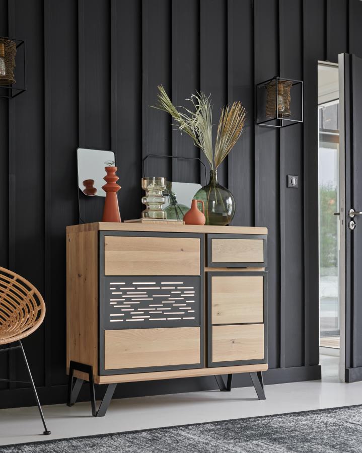 Le meuble d'entrée de la collection EDGE de style industriel moderne s'insérera parfaitement dans votre entrée et vous offrira un espace de rangement.