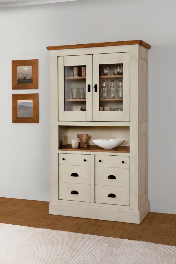 La vitrine de la collection ROMANCE, fabriquée en France, s'insérera parfaitement dans votre intérieur et vous offrira un espace de rangement supplémentaire tout en décorant votre pièce grâce à ses portes vitrées et sa niche ouverte.