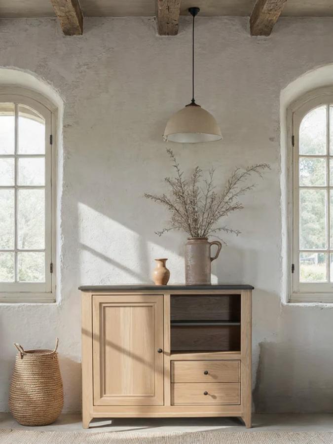 Le meuble d’entrée VAUBAN combine élégance et fonctionnalité avec sa conception en chêne massif. Doté d’une porte, de 2 tiroirs et d’une niche, il offre un rangement pratique et moderne, complété par une prise USB intégrée.
